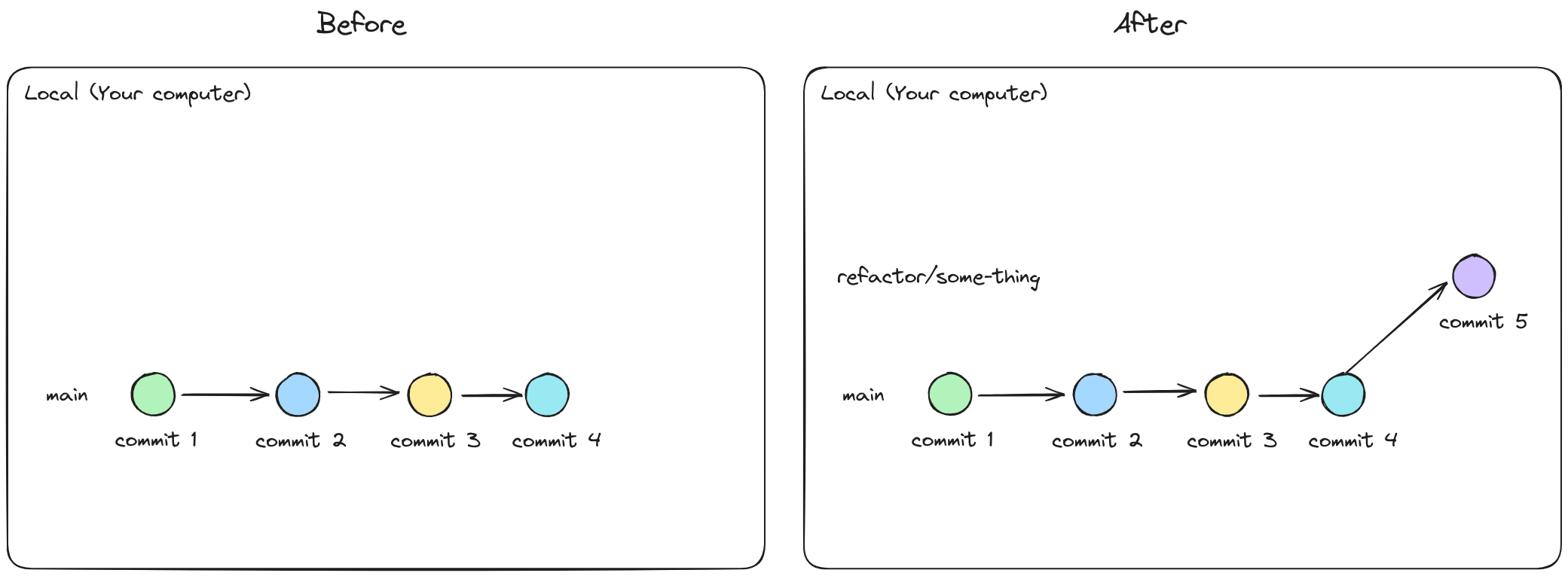 From there, I’ll either hack away or branch out immediately with something like git checkout -b feat/some-words-to-describe-work. The reason I often tend to start hacking first is that I generally discover things that might need to be tidied up that’ll allow developing my feature easier.